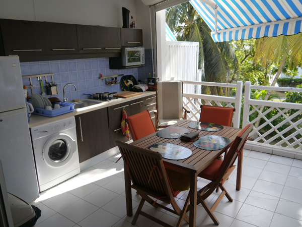 Il se compose d'une entrée avec placard, d'une salle de bain, d'un séjour meublé de deux lits individuels et d'un coin salon, d'une cuisine salle à manger sur terrasse et d'une mezzanine composée d'un lit double et d'un lit simple avec placard, commode et fauteuil dans la petite ville de Saint François, mélant traditions antillaises et activités touristiques dans le site le plus en vogue des Antilles en Guadeloupe.